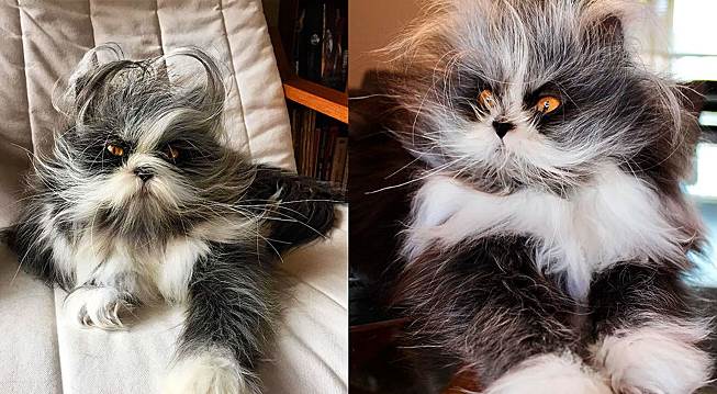 É um gato! O felino é da raça persa, mas o que confunde sua aparência é uma condição congênita rara também conhecida como 'síndrome do lobisomem'. Tutora e pet vivem em Quebec, Canadá.
