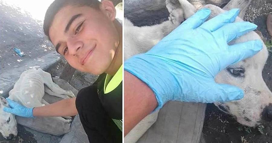 Ele é um adolescente, mas em sua tenra idade deu uma lição a toda a comunidade quando saiu do transporte para ajudar o cachorro que viu morrendo no chão.