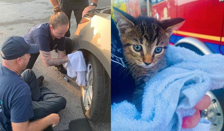 as tripulações encontraram um gato de 3 semanas preso dentro da roda de um Chevrolet Equinox. Com a permissão dos proprietários do veículo, o revestimento das rodas foi removido e o gatinho foi resgatado", a organização detalhada no posto de mídia social.