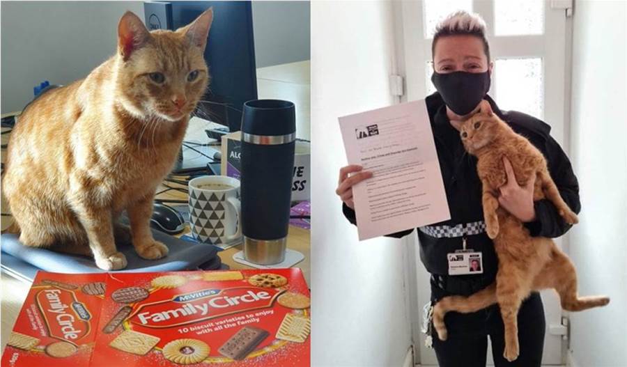 Natasha McPhee, diretora de Animais Perdidos e Achados em Kent, ALFIK, conhece o gatinho há algum tempo e o conheceu após sua "prisão" no escritório.